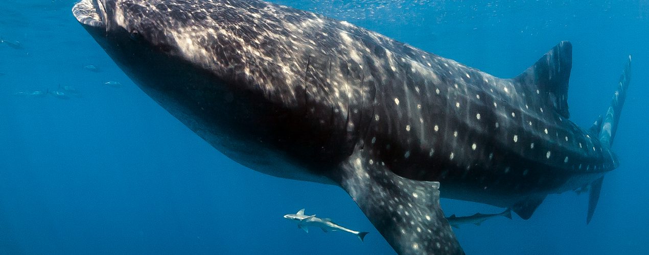 Gladden Spit is the most easterly part of the Belize Barrier Reef and is part of the Gladden Spit and Silk Cayes Marine Reserve.  It is a spawning aggregation site for many different tropical fish species including the cubera, mutton, and dog snappers which produce tons of spawn. This spawning occurs around the full moon to last quarter during the months of March to June. This is what attracts the Whale Shark to the Gladden spit near Placencia in Southern Belize.  Whale sharks are the biggest fish in the ocean growing up to lengths of 60 feet/18 meters and are gentle filter feeders that eat minute plankton and spawn.